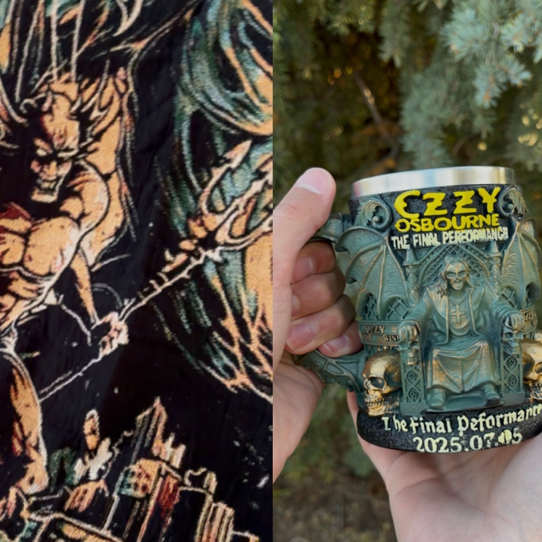 Start your day with the Ozzy Mug — bold, durable, and infused with pure rock energy. End it wrapped in the Iron Veil Blanket, woven with the same rebellious spirit. From the first sip to the last song of the night, every piece captures the attitude of heavy metal’s golden age. Built for fans who live loud, dream louder, and never fade to black.